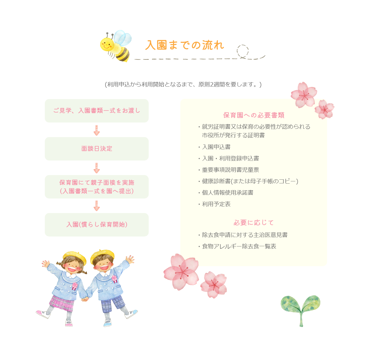 1)送り迎えは、原則として保護者の方とします。保護者以外の方がお迎えにいらっしゃる場合には、事前に必ずお名前(フルネーム)を保育者へお伝えください。